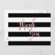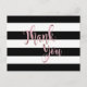 A beautiful rose gold letter saying thank you on black striped lines post card is very elegant and classic to thanks your guests.