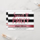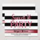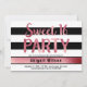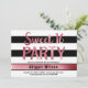 Modern Sweet 16 birthday party invitation with black and white stripes and elegant faux pink rose gold calligraphy font.