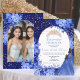 Featuring pretty floral and botanical bouquet with rose gold glitter confetti and a modern glitter arch shape, with an elegant script typography Quinceañera birthday with hand painted princess gown deep blue watercolor with glitter. Add your photo at the back. perfect Mis Quince birthday party with a rose gold princess tiara crown.