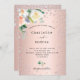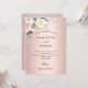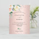 A glamourous wedding invitation. A rose gold faux metallic looking background. Decorated with pink faux diamonds and watercolored florals, flowers in white and rose gold with greenery. Personalise and add your names and wedding details. Black text.