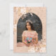 Featuring pretty floral and botanical bouquet with rose gold glitter confetti and a modern glitter arch shape, with an elegant script typography Quinceañera birthday with hand painted princess gown light pink, peach watercolor with glitter. Add your photo at the back. perfect Mis Quince birthday party with a rose gold princess tiara crown.