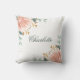 A chic white background decorated with rose gold, blush flowers roses and eucalyptus greenery. Personalise and add a name. The name is written with a modern hand lettered style script. Green text.