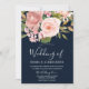 Rose Gold Blush Flowers Navy Wedding Invitation