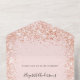 Rose gold, blush coloured background, decorated with faux glitter sparkles on the inside. Personalise and add names, party details, RSVP date, return address and name.