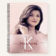 A rose gold, pink background. Personalise and add your own photo, a name, monogram letter and a year. The name is written in burgundy with a large modern hand lettered style script with swashes. The monogram letter in white. Perfect for school, work, as a diary and journalling. To keep the swashes only delete the sample name, leave the spaces or emoji's in front and after the name
