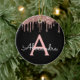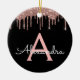 Rose Gold - Blush Pink Black Glitter Monogram Name Ceramic Tree Decoration