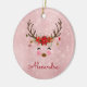 Rose Gold - Blush Pink Christmas Reindeer Monogram Ceramic Tree Decoration