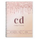 A stylish girly and feminine rose gold and blush pink gradient background decorated with rose gold drips, paint dripping look. Personalise and add your name, monogram initials and a title. Rose gold coloured text.