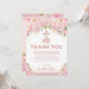 Rose Gold Blush Pink Floral Baptism Thank You Card