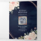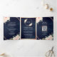 Rose Gold Blush Pink Floral QR Code Navy Wedding Tri-Fold Invitation