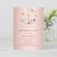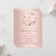 An elegant girly rose gold, blush gradient background, decorated with watercolored pink and white flowers in a wreath and a golden cross. Personalise and add a name and details.