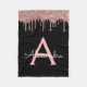 Rose Gold - Blush Pink Glitter Black Monogram Fleece Blanket