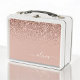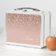 Rose Gold - Blush Pink Sparkle Glitter Brushed Metal Monogram Name Lunch Box. This makes the perfect sweet 16 birthday or going back to school gift for someone that loves glam luxury and chic styles.