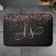 Rose Gold Blush Pink Glitter Glam Monogram Name Bath Mat