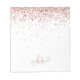 Glam Rose Gold Glitter Elegant Monogram Notepad. Easily personalise this trendy chic notepad design featuring elegant rose gold sparkling glitter on a black background. The design features your handwritten script monogram with pretty swirls and name.