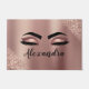 Rose Gold - Blush Pink Faux Foil Metallic Sparkle Glitter Brushed Metal Monogram Name and Initial Eyelashes (Lashes), Eyelash Extensions and Eyes Door Mat. The design makes the perfect sweet 16 birthday, wedding, bridal shower, anniversary, baby shower or bachelorette party gift for someone looking for a trendy cool style.
