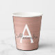 Rose Gold - Blush Pink Faux Metallic Elegant Monogram Birthday, Wedding, Bridal Shower or Bachelorette Party Cup. This Birthday Party Cup can be customised to include your initial and first name. Please contact the designer for customised matching items.
