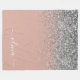 Rose Gold Blush Pink Silver Glitter Monogram Girly Fleece Blanket