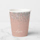 Rose Gold Blush Pink Silver Glitter Monogram Paper Cups