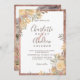 Rose gold chic border frame white script typography wedding, add your couple photo at the back with modern hand painted terracotta, brown, green and yellow floral watercolor.