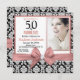 Rose gold bow black damask 50th Birthday photo Invitation