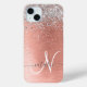 Rose Gold Brushed Metal Glitter Monogram Name Case-Mate iPhone Case