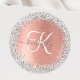 Rose Gold Brushed Metal Glitter Monogram Name Classic Round Sticker