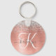 Rose Gold Brushed Metal Glitter Monogram Name Key Ring
