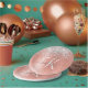 Easily personalise this trendy chic paper plate design featuring pretty silver sparkling glitter on a rose gold brushed metallic background.