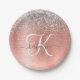 Rose Gold Brushed Metal Glitter Monogram Name Paper Plate