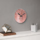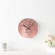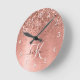 Easily personalize this trendy chic round clock design featuring pretty rose gold sparkling glitter on a rose gold brushed metallic background.