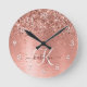 Rose Gold Brushed Metal Glitter Monogram Name Round Clock