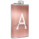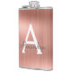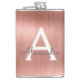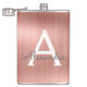 Rose Gold Brushed Metal Monogram Name and Initial Hip Flask