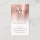 Modern Rose Gold Brushed Metal Monogram Girly Elegant Stylish Script Name Business Card