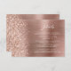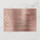 This elegant modern wedding details enclosure card features a rose gold brushed metal background image sprinkled with faux diamond glitter. Customise the white text, with the title "Details" in stylish handwriting script and the remaining text in sans serif font. The reverse side features a matching rose gold brushed metal and faux glitter design.