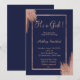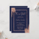 Rose gold brushstrokes navy blue girl baby shower invitation