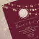 Elegant, modern, rustic, boho marsala burgundy monogrammed wedding invitation with gold gilded floral lace and string lights. See other products from the same collection! It is recommended to put the wax seal sticker, instead the monogram at the top, for more personalisation to create a stronger effect of the personal touch of your love story, uniqueness and individuality.