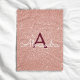 Pink Rose Gold and Burgundy Sparkle Glitter Monogram Name and Initial Fleece Blanket. The Fleece Blanket makes the perfect gift for someone decorating her room in rose gold.