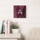 Rose Gold Burgundy Sparkle Monogram Name & Initial Square Wall Clock