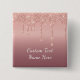 Rose Gold Burron Glitter Drips Custom Text Name 15 Cm Square Badge