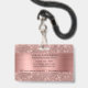 Chic trendy lashes id badge features rose gold faux foil background and glitter drips ( note no real glitter will be used), and cleaning spray icon in rose gold colour. Perfect for a commercial or residential services for cleaning, housekeeper, maid service, or janitorial supplies.