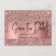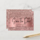 Modern, stylish and chic Quinceañera save the date postcard. Design features rose gold faux glitter/ foil and shimmer background, calligraphy script save the date and a name. Add more details on the back.
