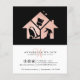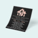 Modern business flyer designed for a commercial or residential services for cleaning, housekeeper, maid service, or janitorial supplies. Design featuring of rose gold house and cleaning equipment inside, name and text line on the front. Customise the back with your full contact details and social media details.