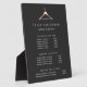 Elegant plaque with easel displays your services or price list beautifully. Perfect for tailors, seamstresses, personal shoppers, dry cleaners and more, this chic design features classic white lettering on a rich charcoal grey background adorned with faux rose gold foil clothes hanger illustration. Includes three customisable headings and body text fields, and space for your business contact information along the bottom. To adjust layout, enter your text and then use the Customise function to change positioning and font sizes.