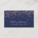 Modern makeup hair rose gold typography with rose gold confetti on customisable navy blue with a chic, minimalist layout.