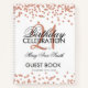 An elegant 21st Birthday Party Guest Book template with Rose Gold Glitter Confetti on White design and easy to customise text.