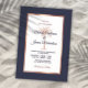 Invite your guests to help you celebrate your special day with this elegant invitation featuring modern script, rose gold copper and navy blue text including an artistic palm tree and metallic rose gold copper frame on the front. A navy blue background is on the front and back of the card. If you need help or a custom order, please contact me.