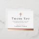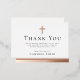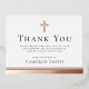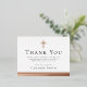 Elegant bereavement sympathy thank you flat note card featuring a rose gold, gold or silver real foil cross and border and the word "Thank you" in an elegant serif font. Background colour, fonts and font colours can be changed with the design tool.