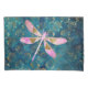 Rose Gold Dragonfly on Turquoise Floral Background Pillowcase