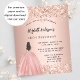 A modern, stylish and glamourous invitation for a 18th (or any age) birthday party. A rose gold background with faux gold glitter dust, a girl wearing a ball gown. The name is written with a modern hand lettered style script. Personalise and add your party details.